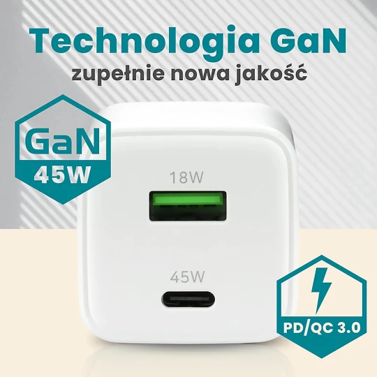Ładowarka sieciowa 230V EVERACTIVE SC-450Q 1xUSB-A + 1xUSB-C 45W biała