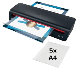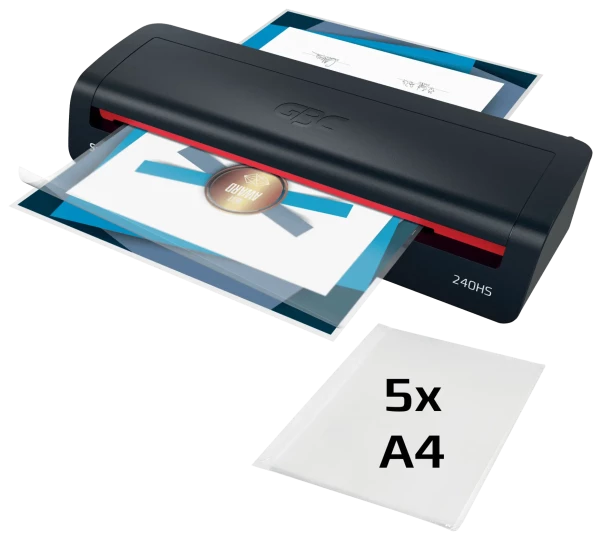 - Sprzedawany wraz z pakietem startowym, zawierającym 5 folii do laminacji w formacie A4 (grubość 75 mikronów).