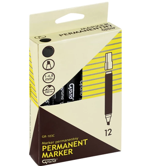 Marker permanentny czarny ścięta końcówka opakowanie 12 sztuk GR-103C GRAND