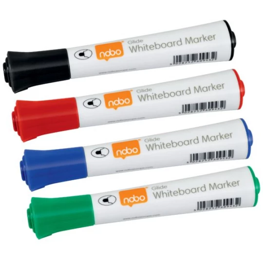 Markery suchościeralne Glide przeznaczone są do stosowania na tablicach suchościeralnych i innych nieporowatych powierzchniach, np. szklanych czy ceramicznych. Są usuwalne, szybko schną, a zastosowany tusz odznacza się mało wyczuwalnym zapachem. Uzyskasz nimi mocne, wyraźne linie. Dostępne są w różnych kolorach, co pozwoli Ci realizować wszelkie zadania związane z prezentacją. Idealnie sprawdzą się w szkole, biurze i w domu. Opakowanie zawiera 10 markerów suchościeralnych z okrągłą, 2-milimetrową końcówką. Używając ich z tablicą suchościeralną Nobo, osiągniesz optymalne efekty.