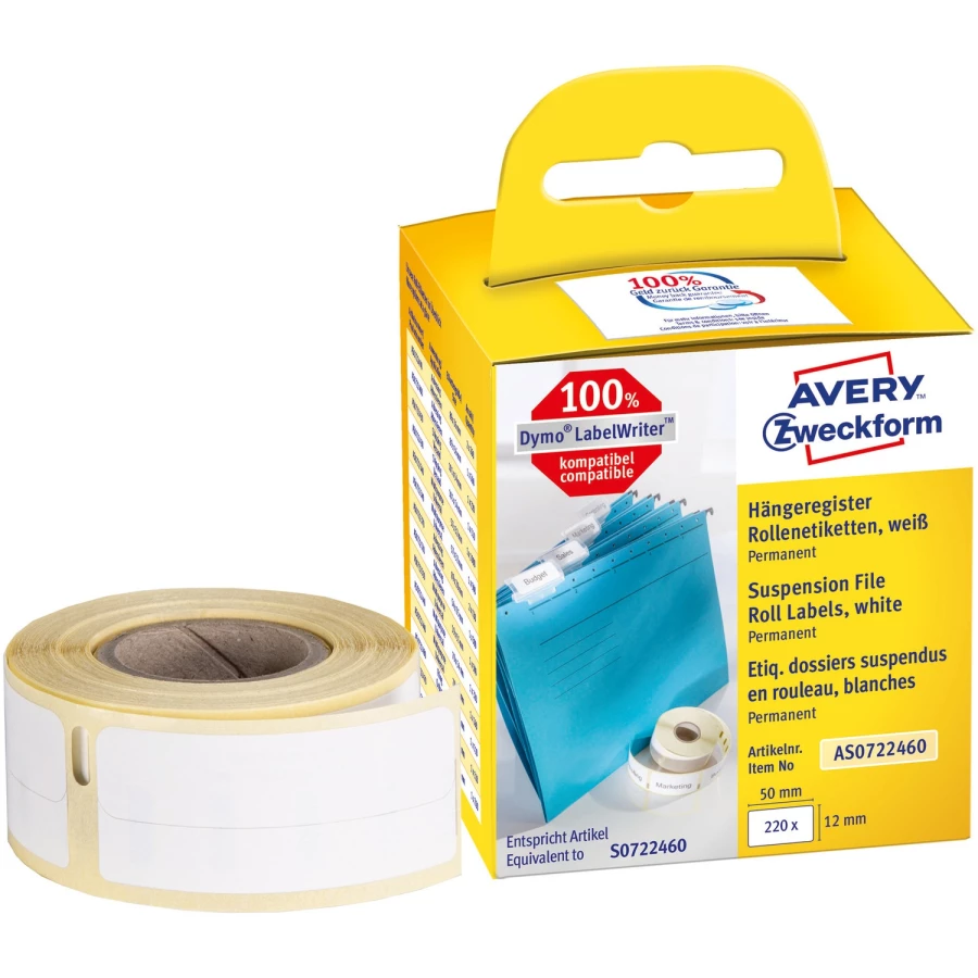 Minietykiety w rolce 220 etyk. 12 x 50 mm, trwałe, białe AS0722460 Avery Zweckform