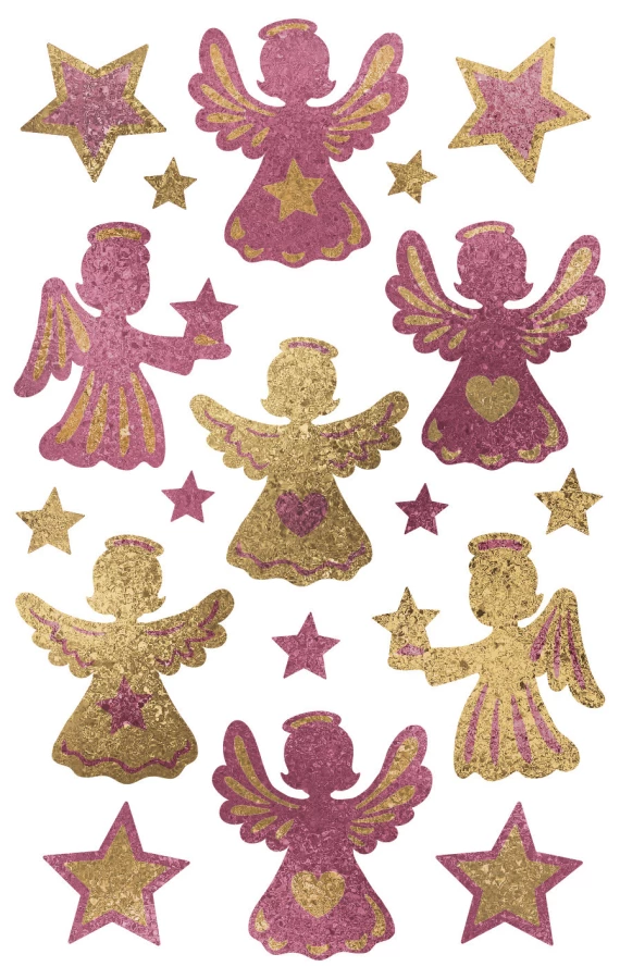 Blyszczące, naklejkowe aniolki wykonane na wyjątkowej folii 3D. Nalepki ideale do tworzenia dekoracji na bozonarodzeniowe przyjecia, do ozdabiania bombek, prezentów, kalendarzy adwentowych, kartek z zyczeniami, serwetek i innych rzeczy, które potrzebują odrobiny świątecznej magii.