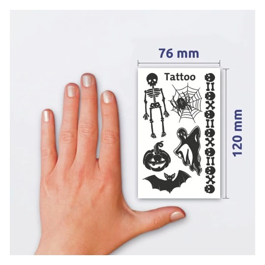 - 6 usuwalnych, łagodnych dla skóry tatuaży na Halloween