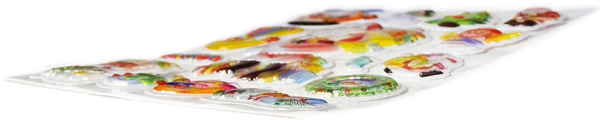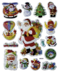 Naklejki wypukłe, wzór: Mikołaj, helikopter, balon, aniołek, bałwanek, wianek. 15 sztuk.