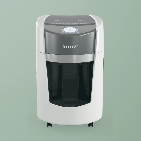 Leitz IQ OptiMax Small Office to innowacyjna i stylowa niszczarka, która zapewnia wysoki poziom bezpieczeństwa niszczonych dokumentów oraz daje pewność, że cały proces przebiegnie bezproblemowo. Oferuje wysoki poziom bezpieczeństwa DIN P5, tnąc na mikrościnki do 8 kartek A4 jednocześnie - jest idealną niewielką niszczarką do użytku osobistego i biurowego. Wyposażona jest w unikalną technologię obrotowego pojemnika (Bin Rotation Technology - BRT), która zwiększa jego pojemność o 33%.*