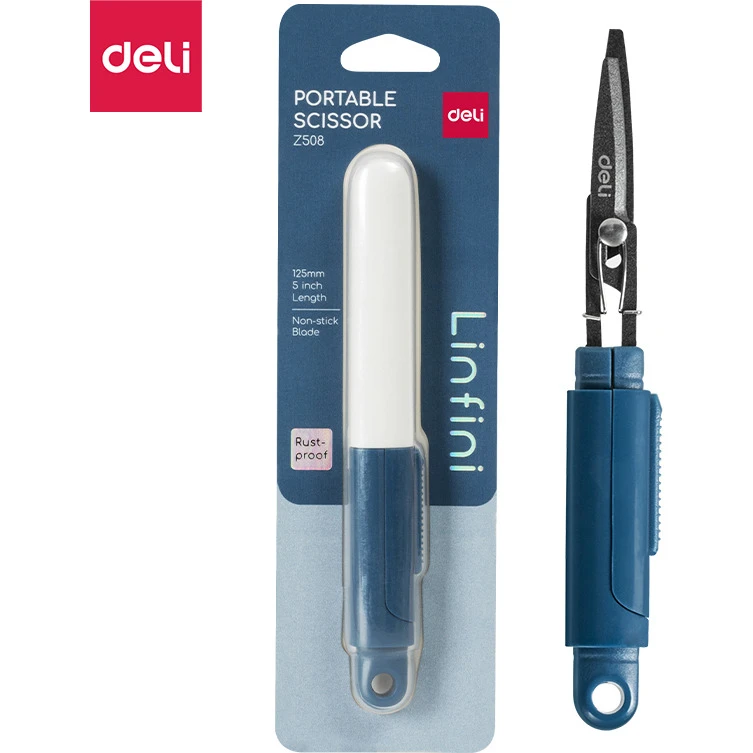 Nożyczki kompaktowe w bezpiecznym etui Linfini niebieskie EZ508B DELI
