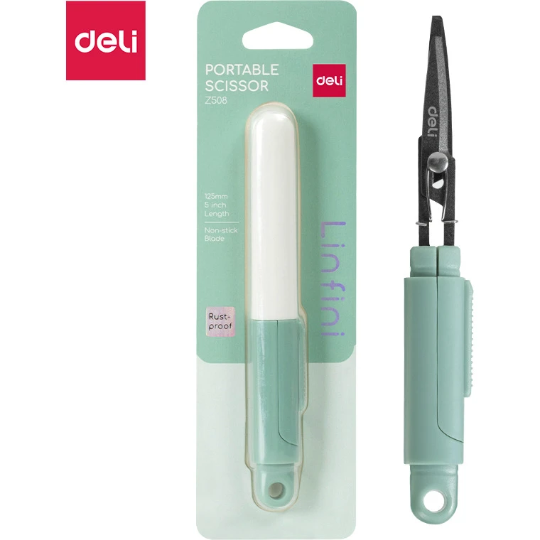 Nożyczki kompaktowe w bezpiecznym etui Linfini zielone EZ508GR DELI