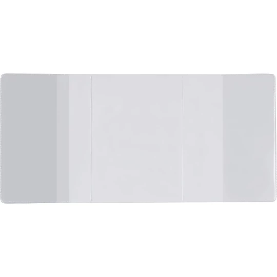 Przezroczysta folia PVC; trójdzielne etui dostosowane do formatu dowodu rejestracyjnego; kieszenie na wewnętrznej stronie okładek;