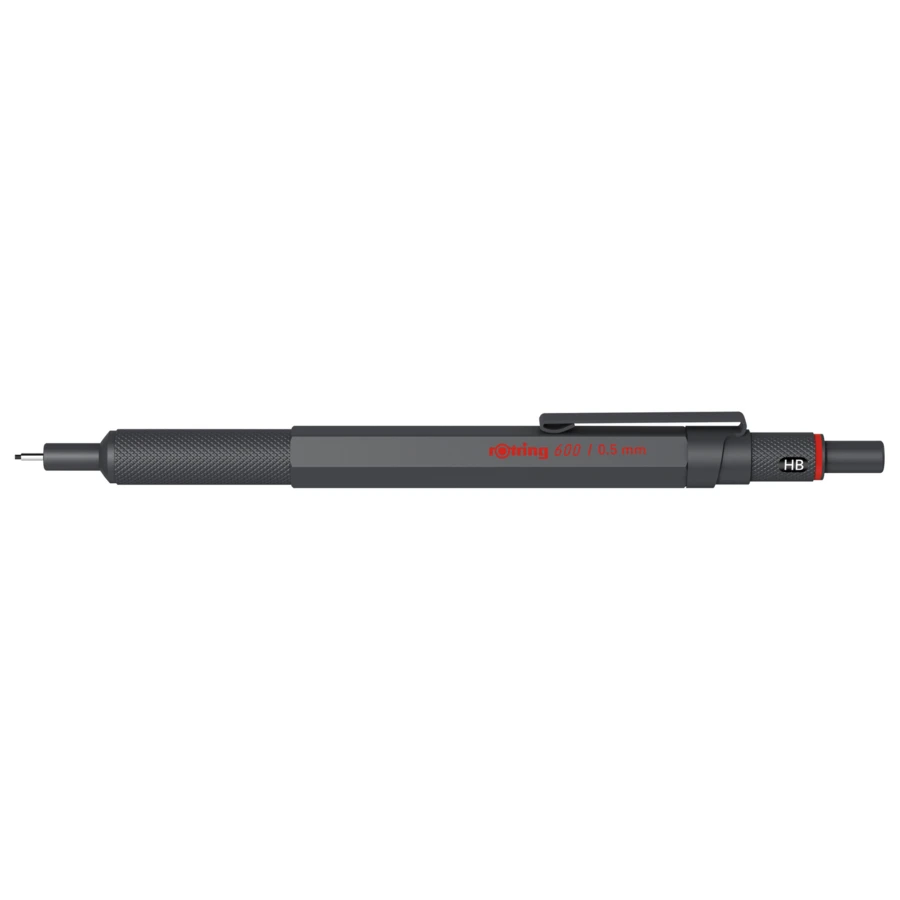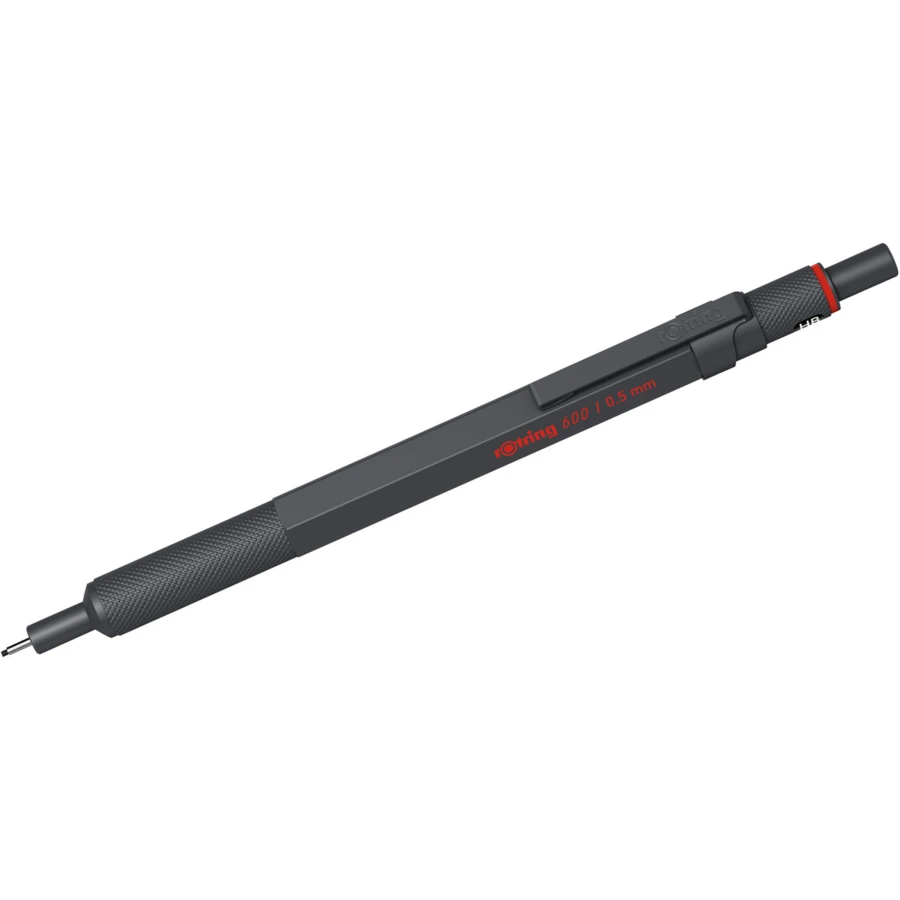 Ołówek automatyczny rOtring 600 0.5 mm z grafitowym korpusem to ikoniczne narzędzie stworzone do długotrwałego użytkowania. Metalowy korpus jest doskonale wyważony, by pisać i rysować bez zmęczenia. Mosiężny mechanizm zapewnia precyzję przy wysuwaniu rysika, a dostosowywany wskaźnik twardości pozwala na łatwą identyfikację podczas pracy. Jego sześciokątny kształt powoduje, że leży zawsze tam, gdzie zdecydujesz. Mocowana na stałe tuleja zapobiega łamaniu rysika i zapewnia łatwy dostęp do strony przy precyzyjnym kreśleniu z linijką. Doskonałe do częstego pisania, rysowania i szkicowania.
