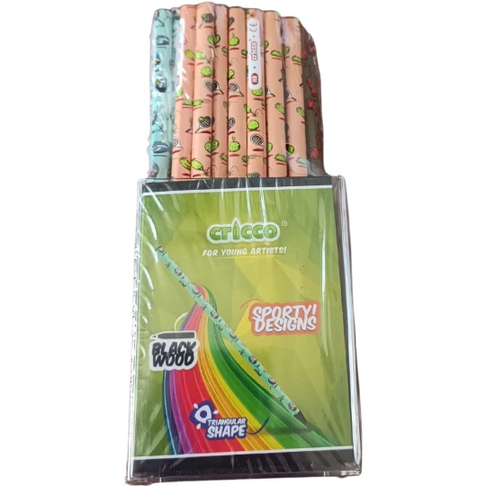 Ołówek CRICCO trójkatny czarne drewno HB SPORTY (72 szt.)