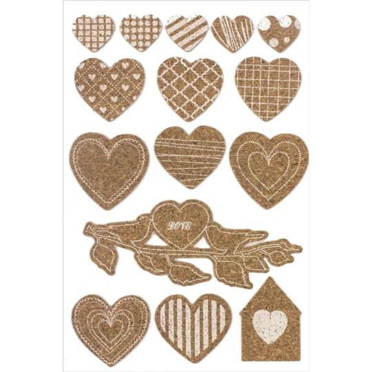Ozdoby korkowe samoprzylepne SERCA 15szt. 254005 Galeria Papieru