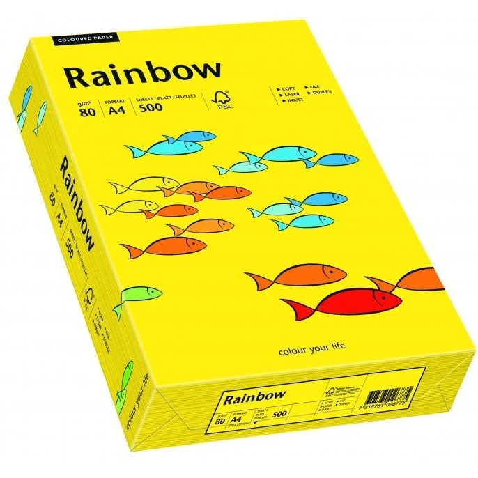 Wysokiej jakości papier kolorowy A4 Rainbow. Papier Rainbow to bez wątpienia jeden z najlepszych papierów sprzedawanych w Polsce. Kolorowy papier biurowy, bezdrzewny, matowy, dla kopiarek, drukarek laserowych i drukarek atramentowych.