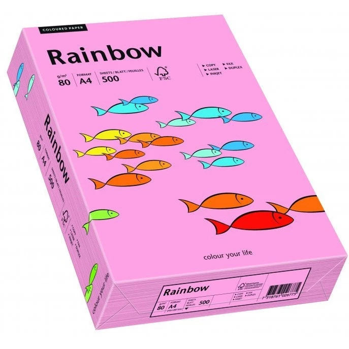 Wysokiej jakości papier kolorowy A4 Rainbow. Papier Rainbow to bez wątpienia jeden z najlepszych papierów sprzedawanych w Polsce. Kolorowy papier biurowy, bezdrzewny, matowy, dla kopiarek, drukarek laserowych i drukarek atramentowych.