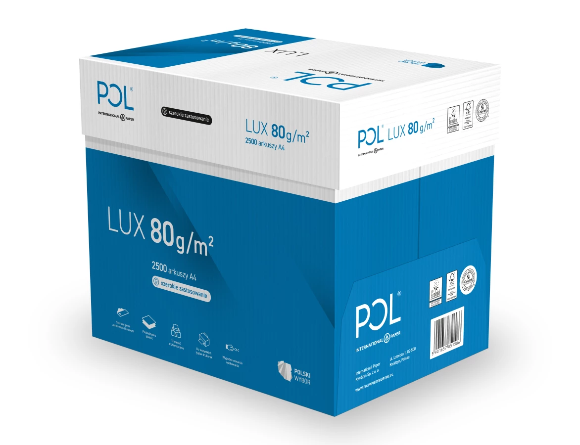 POLlux jest bez wątpienia papierem do codziennego uzytku w kazdym biurze i domu. Przeznaczony do stosowania wydruków i kopii na kopiarkach, drukarkach laserowych i atramentowych.