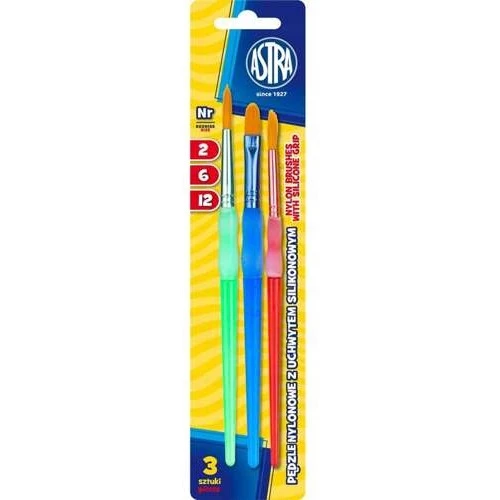 Pędzelki szkolne zestaw 3 sztuki rozmiar nr. 2,6,12 315023002 ASTRA
