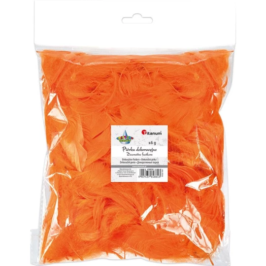 Piórka dekoracyjne, puch, pomarańczowe. Opakowanie 16 g.