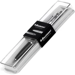 Transparentna obudowa dlugopisu pozwala śledzic poziom tuszu.