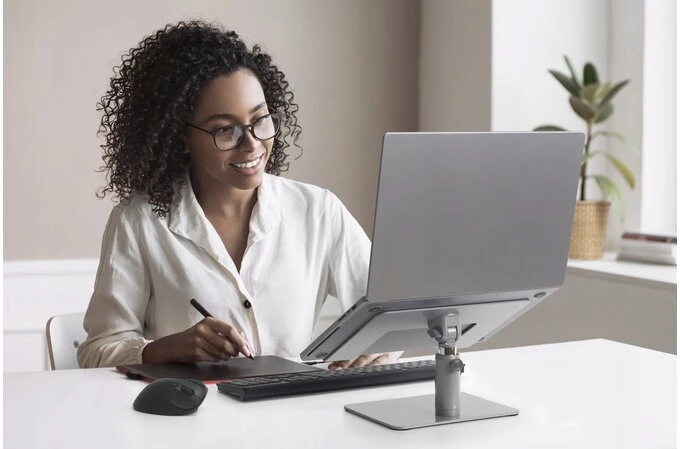 Dzieki uniwersalnej podstawce pod laptopa mozesz podnieśc ekran na wysokośc oczu, aby uzyskac optymalny kąt do patrzenia, a przy tym ograniczyc balagan na biurku.