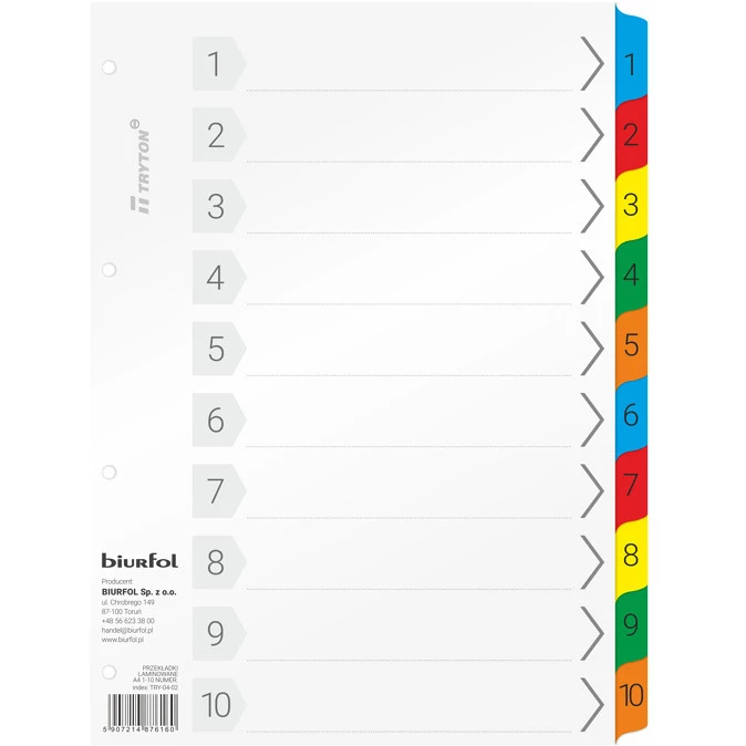 Przekładki laminowane A4 1-10 numeryczne TRY-04-02 BIURFOL