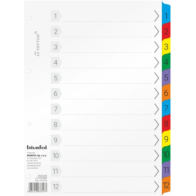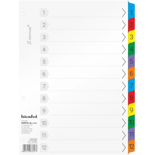 Przekładki laminowane A4 1-12 numeryczne TRY-04-03 BIURFOL