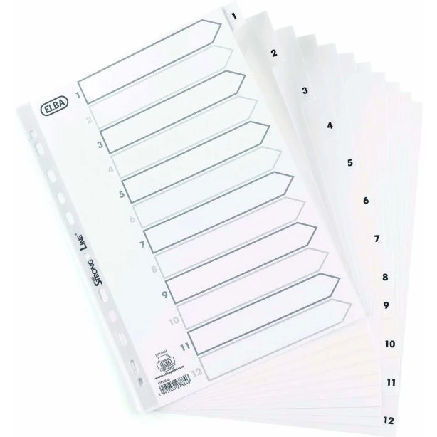 Numeryczne przekladki wykonane z trwalego i wytrzymalego polipropylenu Strong Line odpornego na zniszczenia - doskonale do organizowania dokumentów w segregatorze.