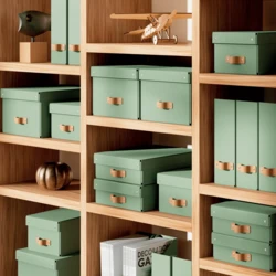 - Pudełka idealnie pasują do regałów z kwadratowymi półkami, standardowych półek i większości szuflad; mogą być także wykorzystane jako pudełka do przechowywania pod łóżkiem