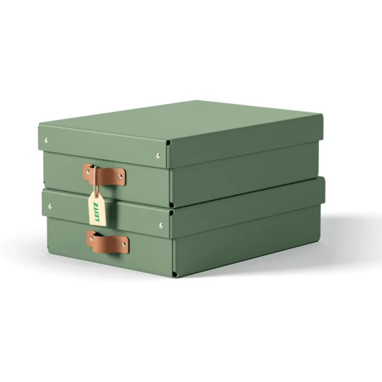 Zadbaj o porządek i dobre samopoczucie, tworząc z pomocą tekturowych pudełek Leitz Puro z pokrywkami uporządkowaną przestrzeń z miejscami do przechowywania. Zestaw dwóch dekoracyjnych pudełek o pojemności 8 litrów pomoże Ci utrzymywać porządek i przechowywać rzeczy w stylowy sposób, w domu i w biurze. Te wysokiej jakości pudełka można ustawiać jedno na drugim, co pozwala zaoszczędzić miejsce i idealnie nadaje się do przechowywania dokumentów A4, laptopów, zabawek, butów czy prac rękodzielniczych.
