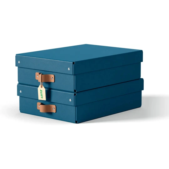 Zadbaj o porządek i dobre samopoczucie, tworząc z pomocą tekturowych pudełek Leitz Puro z pokrywkami uporządkowaną przestrzeń z miejscami do przechowywania. Zestaw dwóch dekoracyjnych pudełek o pojemności 8 litrów pomoże Ci utrzymywać porządek i przechowywać rzeczy w stylowy sposób, w domu i w biurze. Te wysokiej jakości pudełka można ustawiać jedno na drugim, co pozwala zaoszczędzić miejsce i idealnie nadaje się do przechowywania dokumentów A4, laptopów, zabawek, butów czy prac rękodzielniczych.