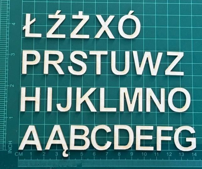 Alfabet Scrapek - tekturka wycięty laserem z beermaty o grubości 1,5 mm. Wymiary jak na zdjęciu. Kod produktu to: LBA00543