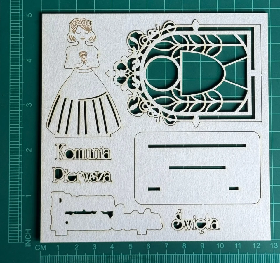 Ambonka z dziewczynką komunia Scrapek - tekturka wycięty laserem z beermaty o grubości 1,5 mm. Wymiary jak na zdjęciu. Kod produktu to: LBA01257
