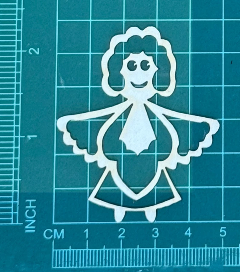 Aniołek Scrapek - tekturka wycięty laserem z beermaty o grubości 1,5 mm. Wymiary jak na zdjęciu. Kod produktu to: LBA00520