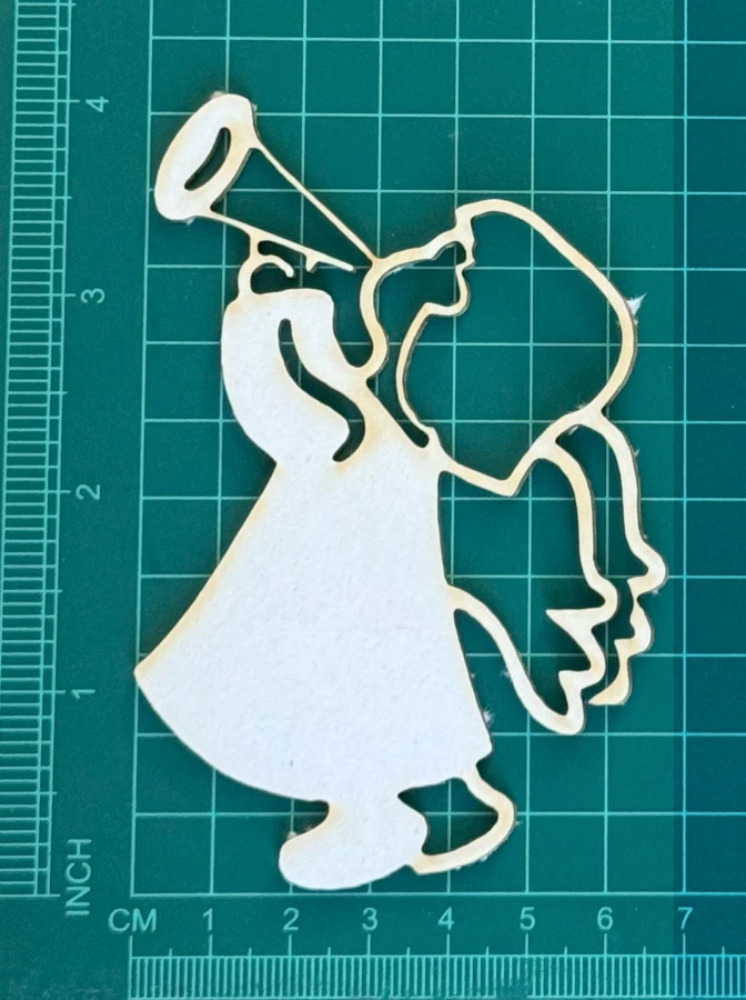 Aniołek Scrapek - tekturka wycięty laserem z beermaty o grubości 1,5 mm. Wymiary jak na zdjęciu. Kod produktu to: LBA00554