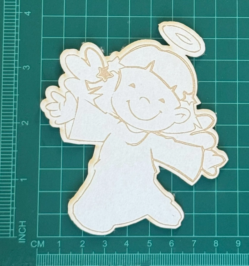 Aniołek Scrapek - tekturka wycięty laserem z beermaty o grubości 1,5 mm. Wymiary jak na zdjęciu. Kod produktu to: LBA00555