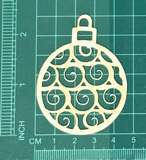 Bombka Scrapek - tekturka wycięty laserem z beermaty o grubości 1,5 mm. Wymiary jak na zdjęciu. Kod produktu to: LBA00563