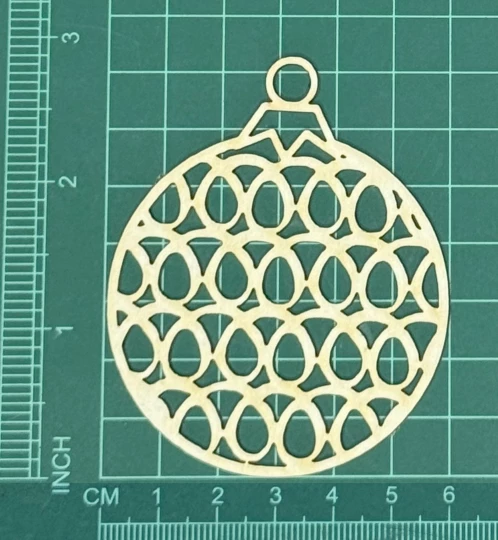 Bombka Scrapek - tekturka wycięty laserem z beermaty o grubości 1,5 mm. Wymiary jak na zdjęciu. Kod produktu to: LBA00611