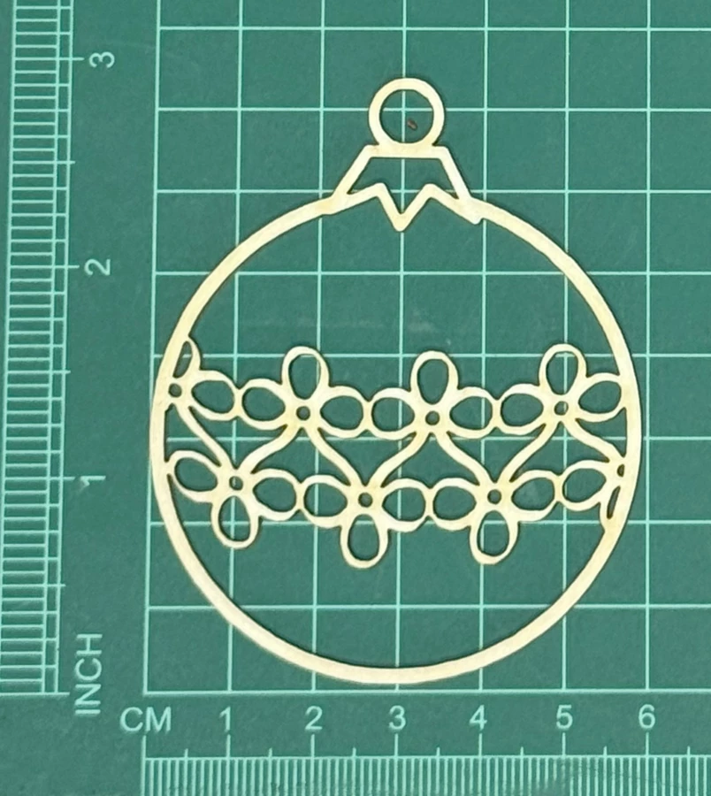 Bombka Scrapek - tekturka wycięty laserem z beermaty o grubości 1,5 mm. Wymiary jak na zdjęciu. Kod produktu to: LBA00612