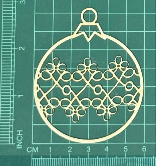 Bombka Scrapek - tekturka wycięty laserem z beermaty o grubości 1,5 mm. Wymiary jak na zdjęciu. Kod produktu to: LBA00616