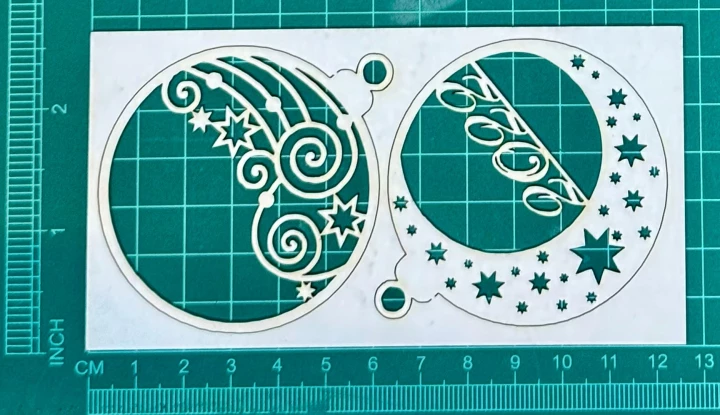 Bombki Scrapek - tekturka wycięty laserem z beermaty o grubości 1,5 mm. Wymiary jak na zdjęciu. Kod produktu to: LBA01054