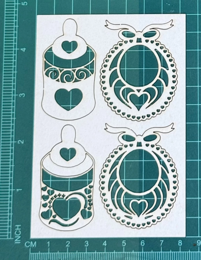 Butelka i Śliniaczek zestaw Scrapek - tekturka wycięty laserem z beermaty o grubości 1,5 mm. Wymiary jak na zdjęciu. Kod produktu to: LBA00857