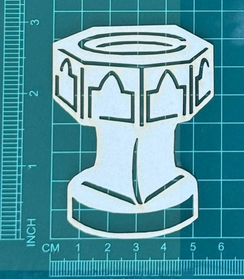 Chrzcielnica Scrapek - tekturka wycięty laserem z beermaty o grubości 1,5 mm. Wymiary jak na zdjęciu. Kod produktu to: LBA00883