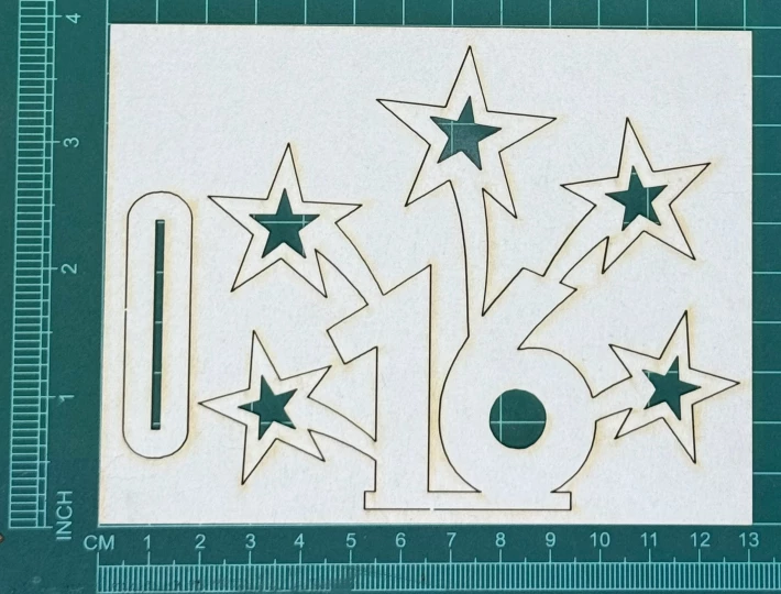 Cyfra 16 z fajerwerkami do postawienia Scrapek - tekturka wycięty laserem z beermaty o grubości 1,5 mm. Wymiary jak na zdjęciu. Kod produktu to: LBA00936