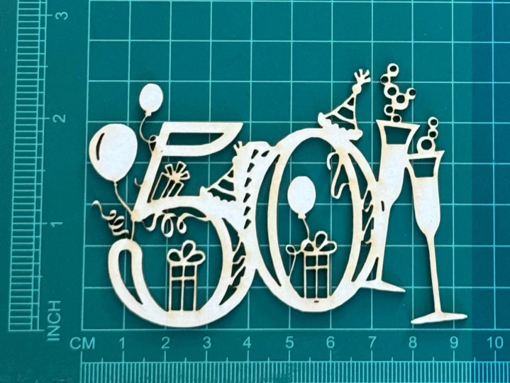 Cyfra 50 Scrapek - tekturka wycięty laserem z beermaty o grubości 1,5 mm. Wymiary jak na zdjęciu. Kod produktu to: LBA00547