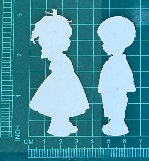 Dzieci dziewczynka i chłopiec Scrapek - tekturka wycięty laserem z beermaty o grubości 1,5 mm. Wymiary jak na zdjęciu. Kod produktu to: LBA00858