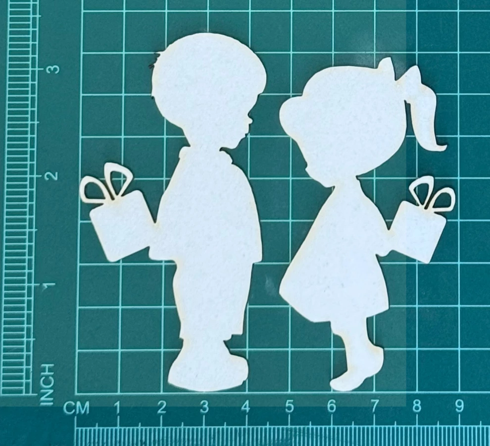 Dzieci z prezentami Scrapek - tekturka wycięty laserem z beermaty o grubości 1,5 mm. Wymiary jak na zdjęciu. Kod produktu to: LBA00859