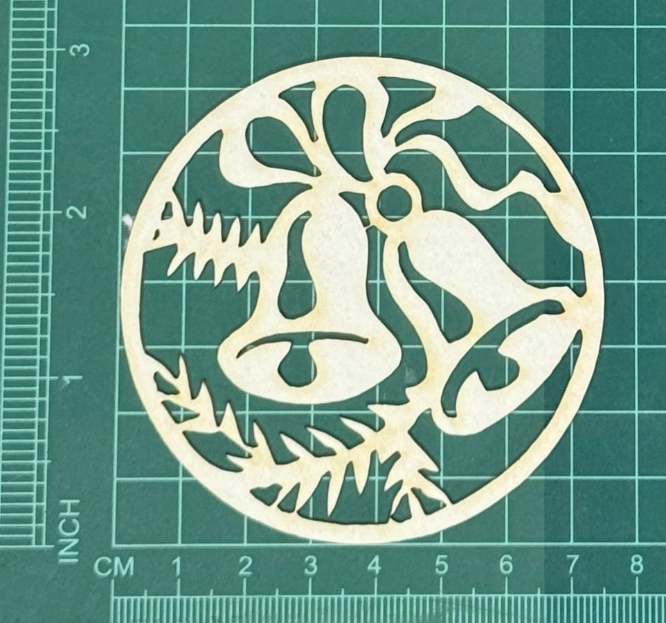 Dzwonki Świąteczne Scrapek - tekturka wycięty laserem z beermaty o grubości 1,5 mm. Wymiary jak na zdjęciu. Kod produktu to: LBA00631