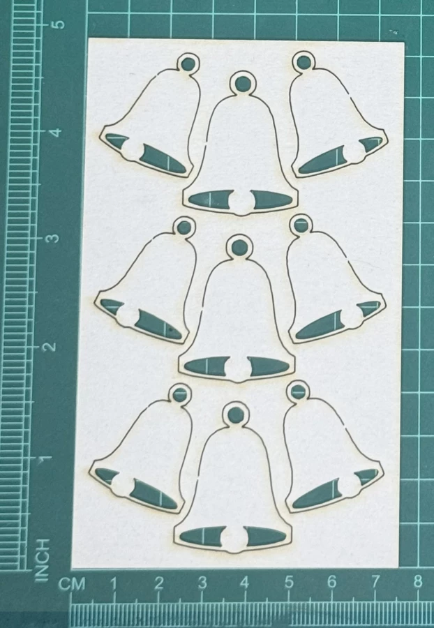 Dzwonki zestaw Scrapek - tekturka wycięty laserem z beermaty o grubości 1,5 mm. Wymiary jak na zdjęciu. Kod produktu to: LBA00698