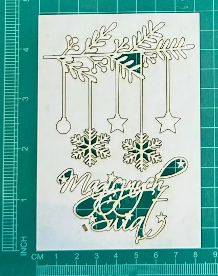 Gałązka z napisem magicznych świąt Scrapek - tekturka wycięty laserem z beermaty o grubości 1,5 mm. Wymiary jak na zdjęciu. Kod produktu to: LBA01052