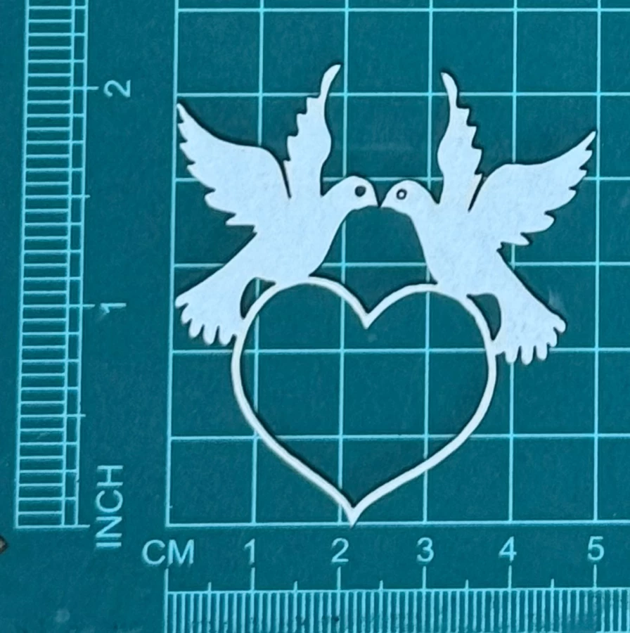 Gołąbkli z serduszkiem Scrapek - tekturka wycięty laserem z beermaty o grubości 1,5 mm. Wymiary jak na zdjęciu. Kod produktu to: LBA00931