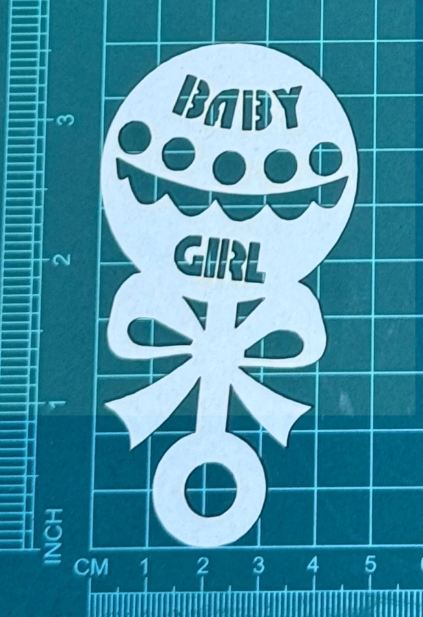 Grzechotka z napisem BABY GIRL Scrapek - tekturka wycięty laserem z beermaty o grubości 1,5 mm. Wymiary jak na zdjęciu. Kod produktu to: LBA00855