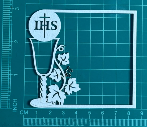 Kielich IHS z obwódką Scrapek - tekturka wycięty laserem z beermaty o grubości 1,5 mm. Wymiary jak na zdjęciu. Kod produktu to: LBA01213